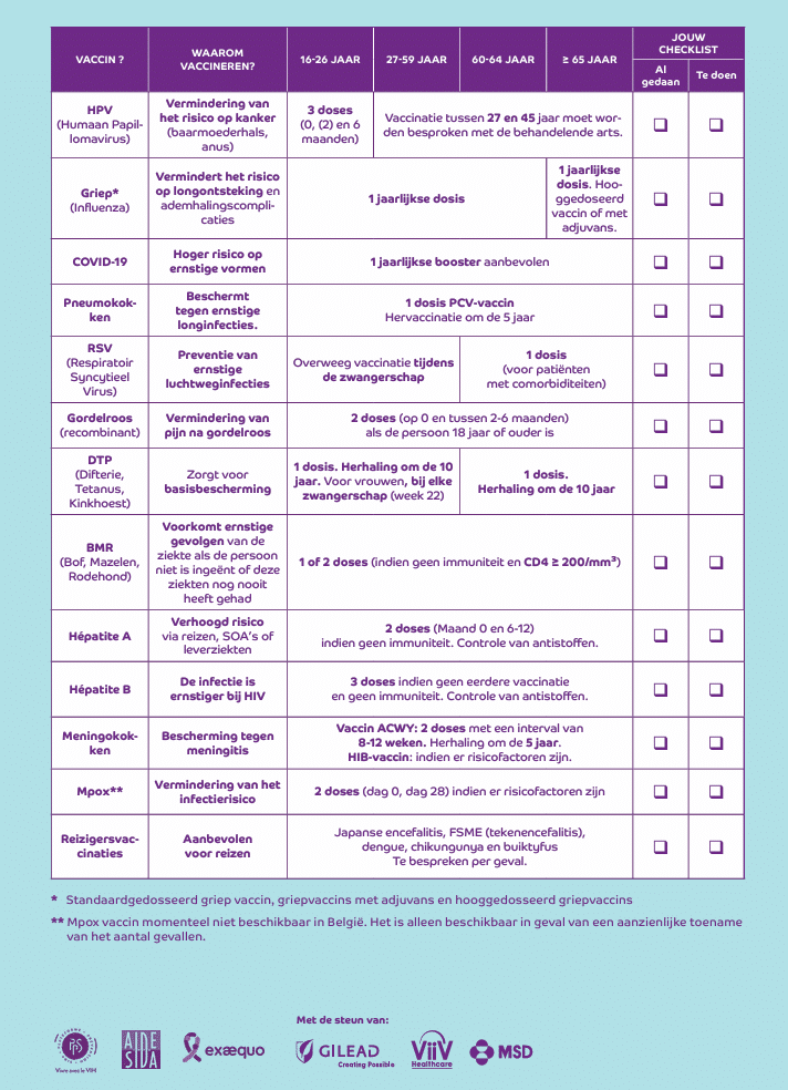 - Shingrix, het recombinante gordelroosvaccin, wordt aanbevolen voor alle volwassenen met hiv ouder dan 18 jaar (niet enkel boven de 50 jaar zoals in de algemene bevolking).